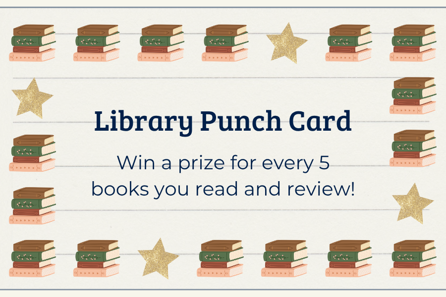 Read and review a library book to get a punch on your card. Get a prize every 5 punches!